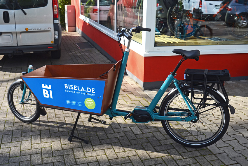 Das E-BISELA 6 * ist ein traditionelles Bakfiets mit Elektroantrieb. Der Motor unterstützt in 3 wählbaren Stufen (Eco/normal/hoch) sobald man losfährt bis zu einer Geschwindigkeit von 25 km/h. Der Akku befindet sich im Gepäckträger. Das Rad kommt daher mit Holzkiste und hochklappender Kindersitzbank mit Gurten. Es eignet sich für viele deiner Transporte in der Stadt. Sein Fahrverhalten ist gutmütig.